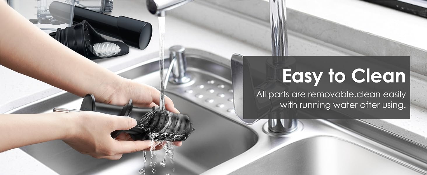 Low-speed cold press technology for maximum juice yield, less waste and more nutrients