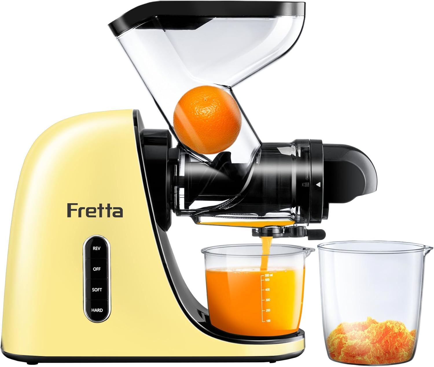 Fretta Edge Max F3000 Cold Press Juicer, Slow Masticating (200W, Tritan Material, Reverse Function, Y-Shape Dual Feed Chutes)