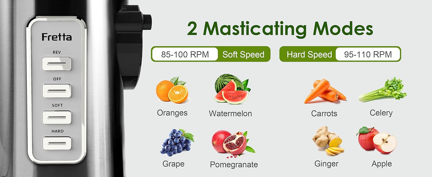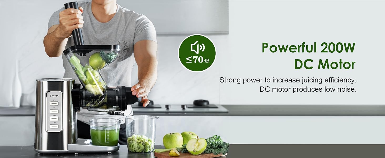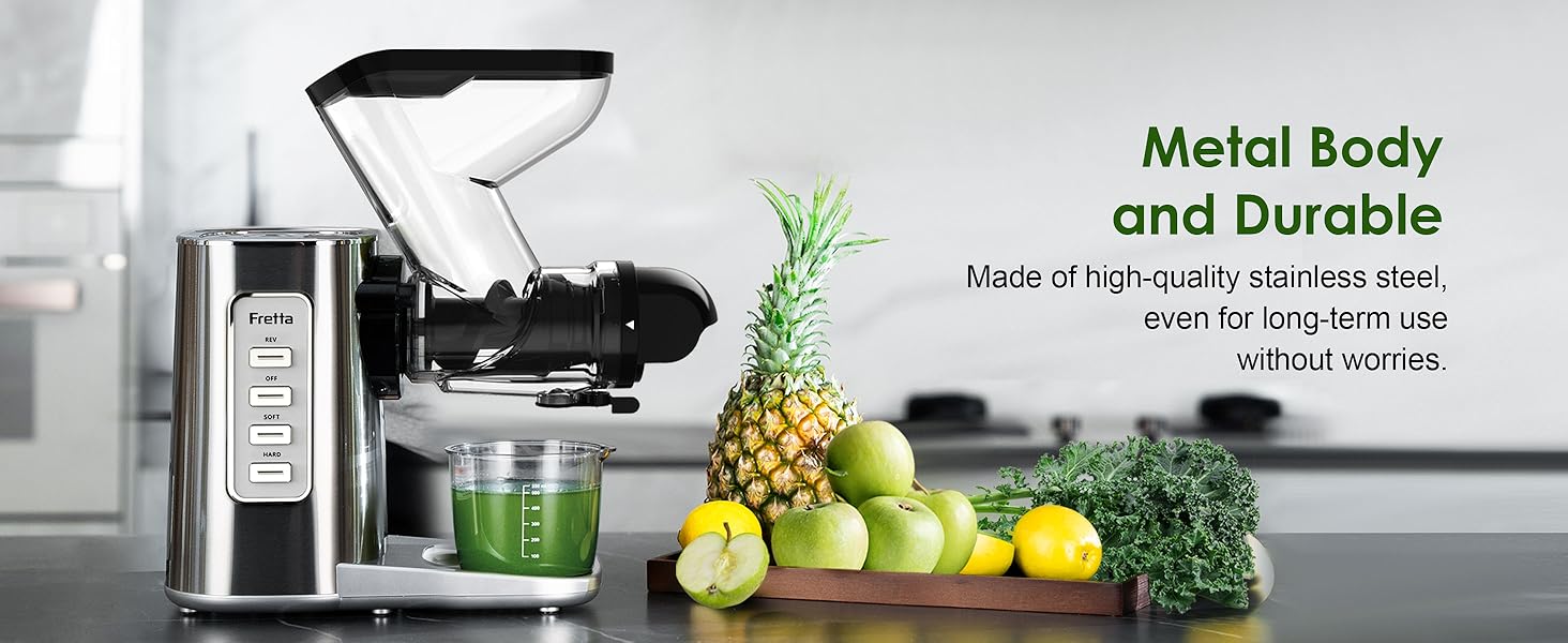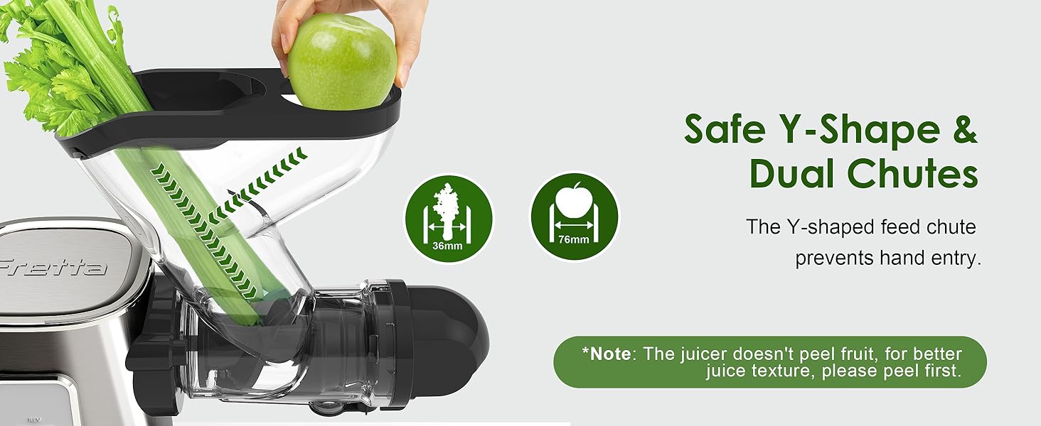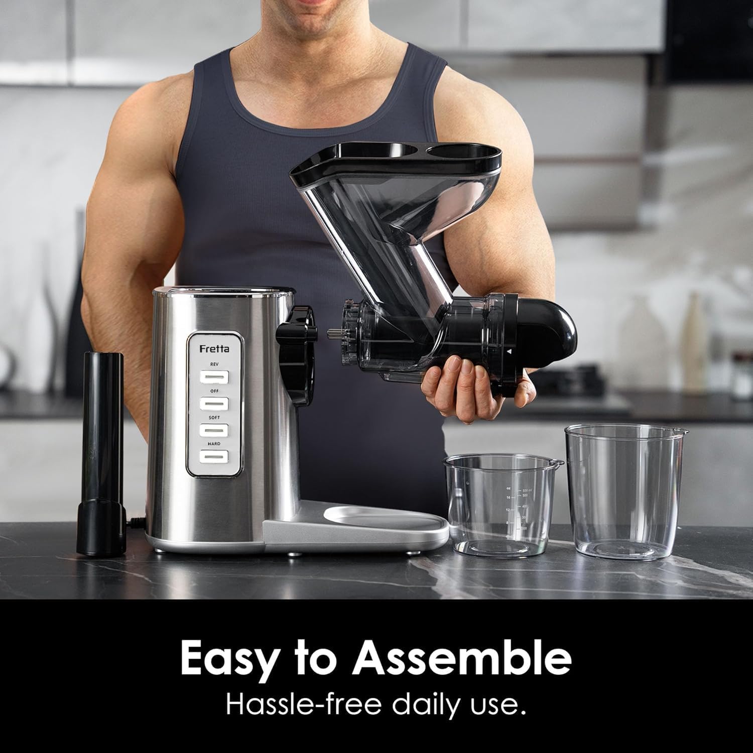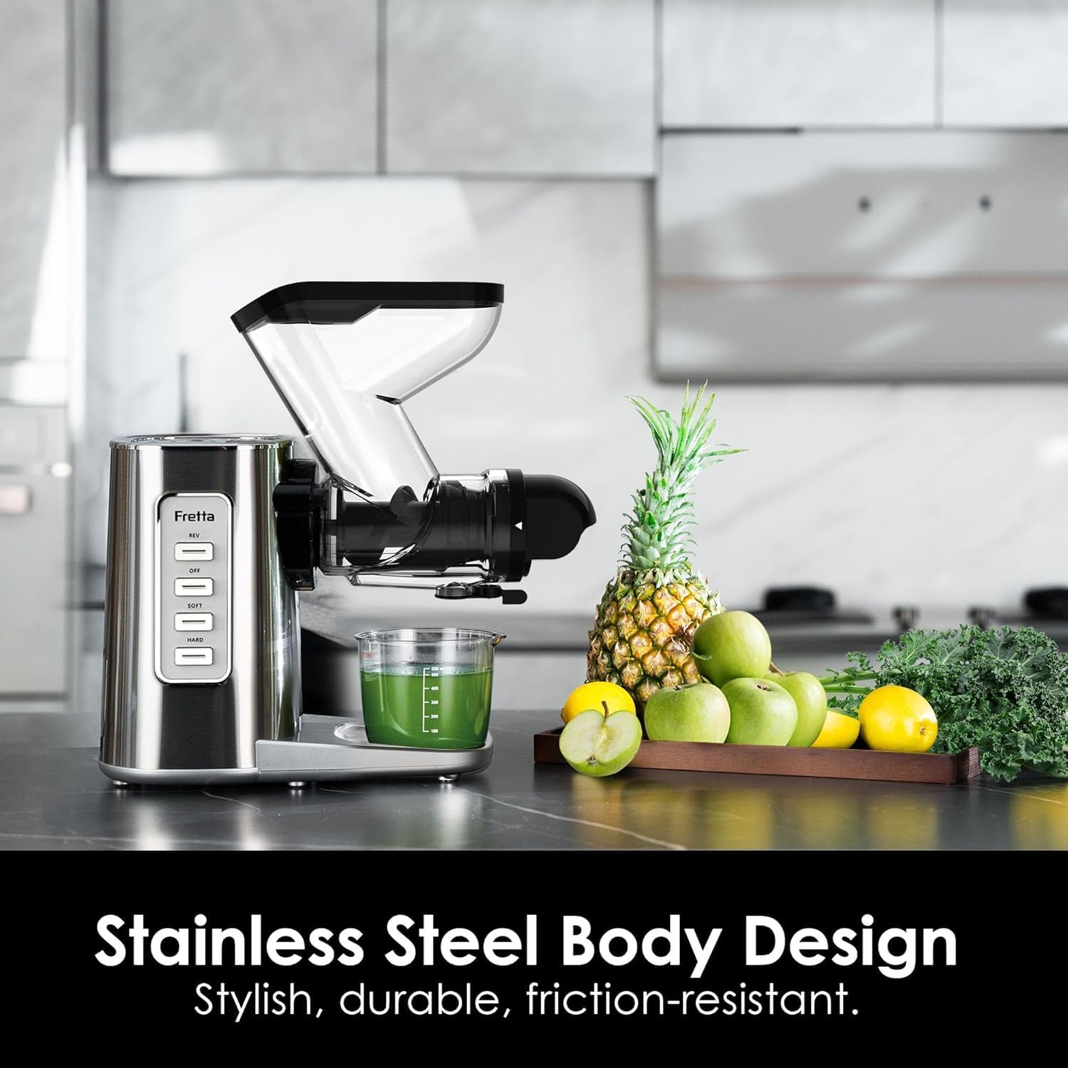 Fretta Edge Max F3500 Cold Press Juicer, Slow Masticating (200W, 3'' Wide Feed Chute, Stainless Steel, Easy Clean)