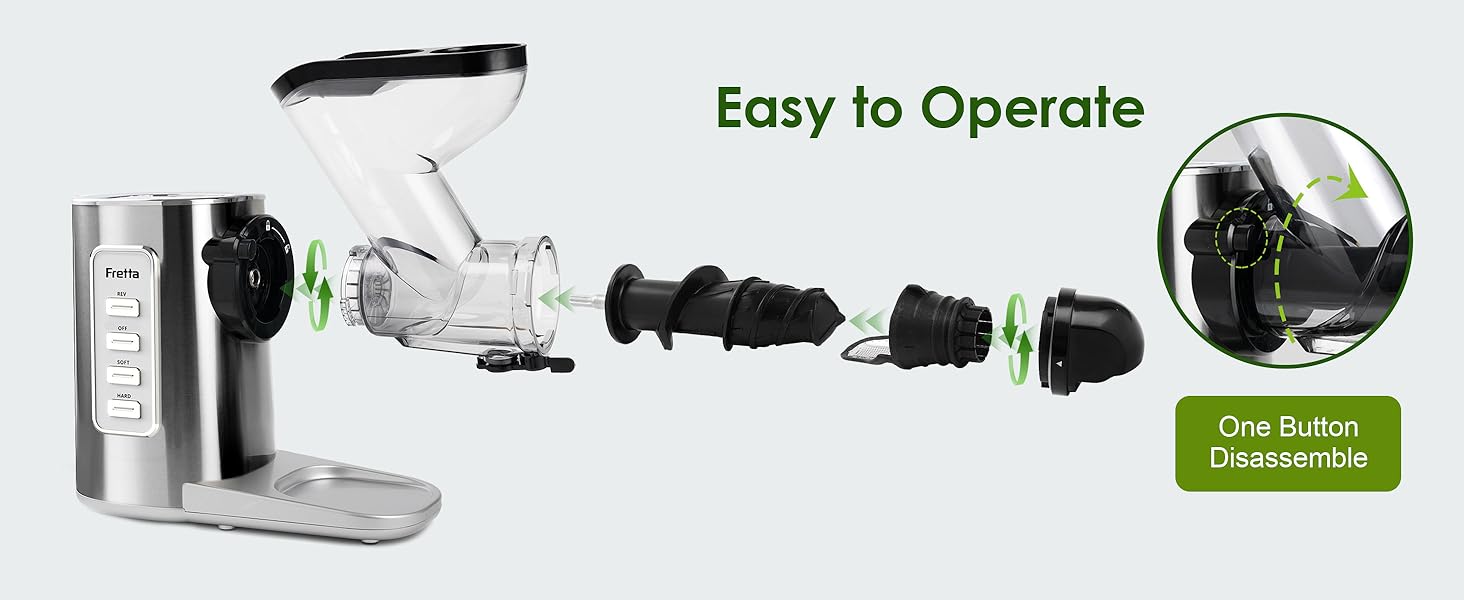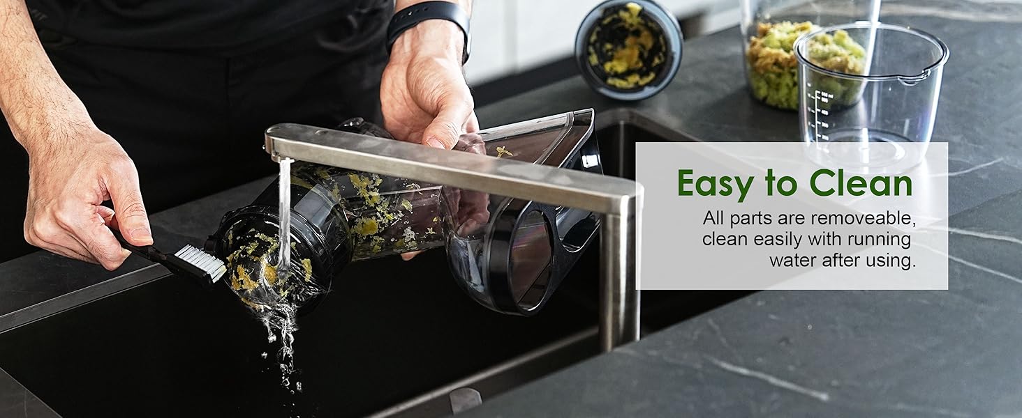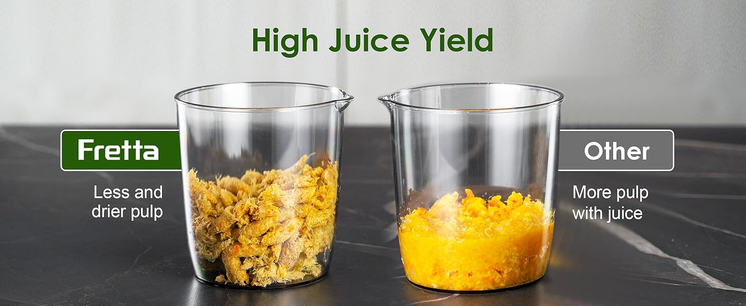 Low-speed cold press technology for maximum juice yield, less waste and more nutrients